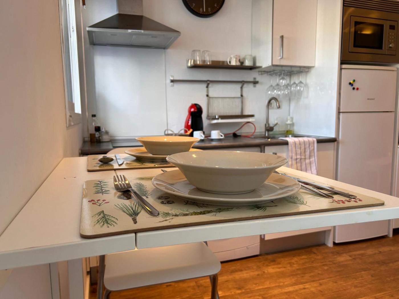 El apartamento cuenta con aire acondicionado, TV de pantalla plana, zona de cocina totalmente equipada con microondas, zona de estar, lavadora y baño con ducha.
