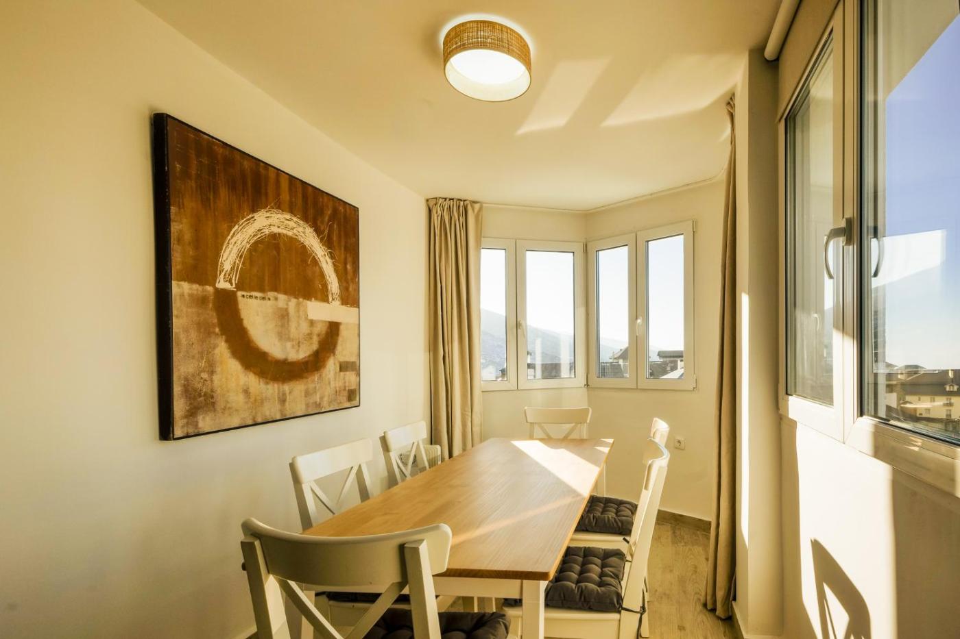 Apartamento. La cocina cuenta con nevera, utensilios, horno y microondas. El apartamento también dispone de barbacoa. El apartamento es amplio y cuenta con TV de pantalla plana, entrada privada, teteracafetera, zona de comedor y vistas al lago. El alojamiento incluye 5 camas.