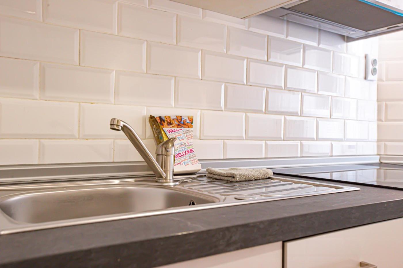 Apartamento de 3 dormitorios. Este apartamento es amplio y cuenta con entrada privada, 3 dormitorios independientes y 3 baños con bañera y secador de pelo. La cocina está equipada con lavavajillas y permite cocinar y almacenar alimentos. El apartamento dispone de aire acondicionado, lavadora, calefacción y TV. El alojamiento cuenta con 8 camas.