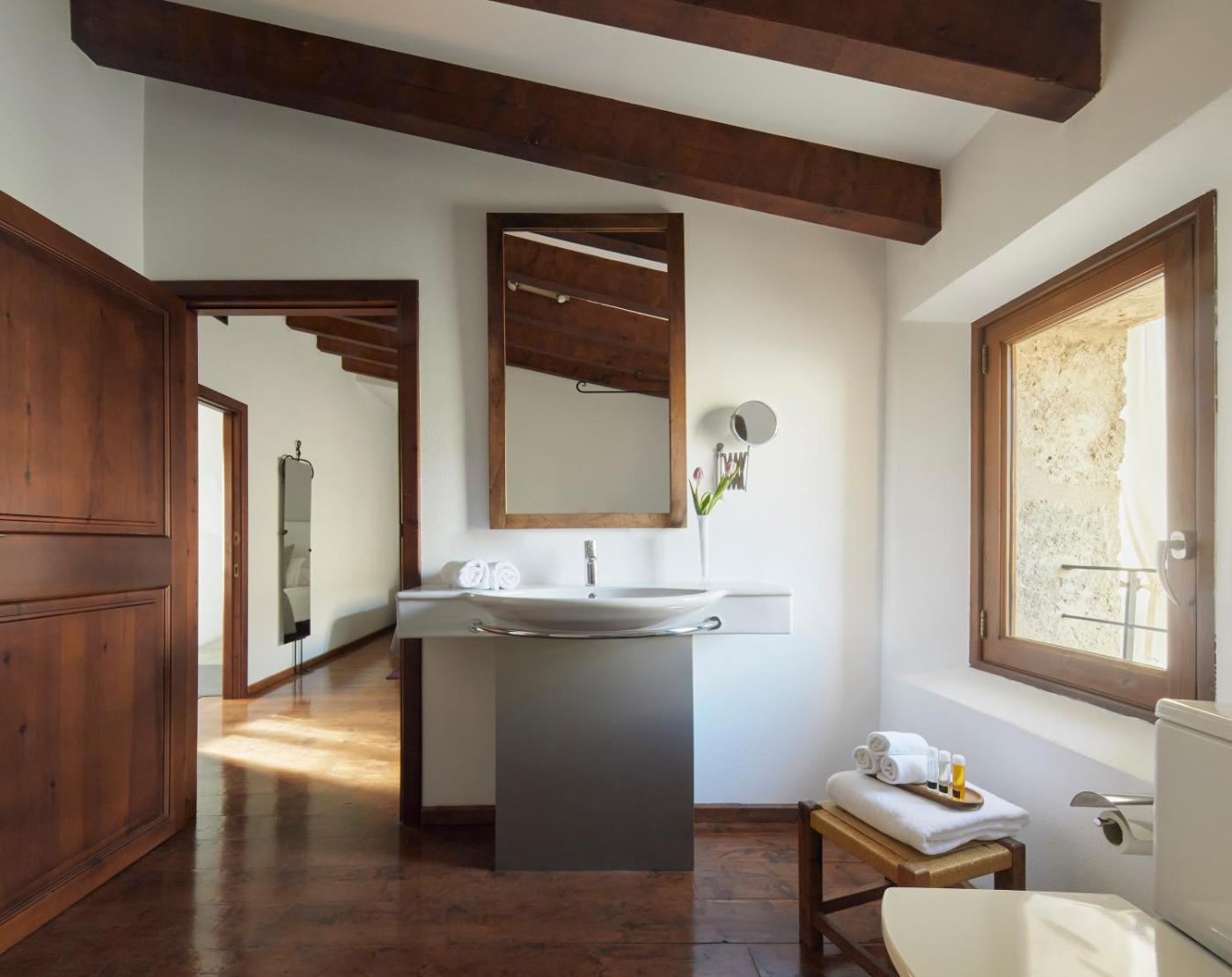 Suite. Esta suite grande tiene arcos de piedra grandes, cama extragrande con dosel, zona de lectura y zona de estar separada con sofá grande. Dispone de acceso gratuito a Internet y TV pantalla plana con canales vÃa satélite. El baño luminoso tiene bañera de hidromasaje y ducha de efecto lluvia. Se pueden añadir 2 camas supletorias bajo petición. ;
