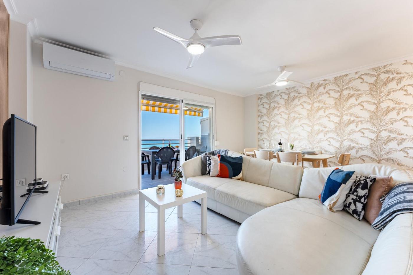 Apartamento Deluxe de 3 dormitorios. This spacious apartment comprises 1 living room, 3 separate bedrooms and 2 bathrooms with a shower and free toiletries. Meals can be prepared in the well-fitted kitchen, which comes with a refrigerator, a dishwasher, kitchenware and an oven. The air-conditioned apartment provides a TV, a washing machine, a tea and coffee maker, a seating area as well as sea views. The unit offers 5 beds.