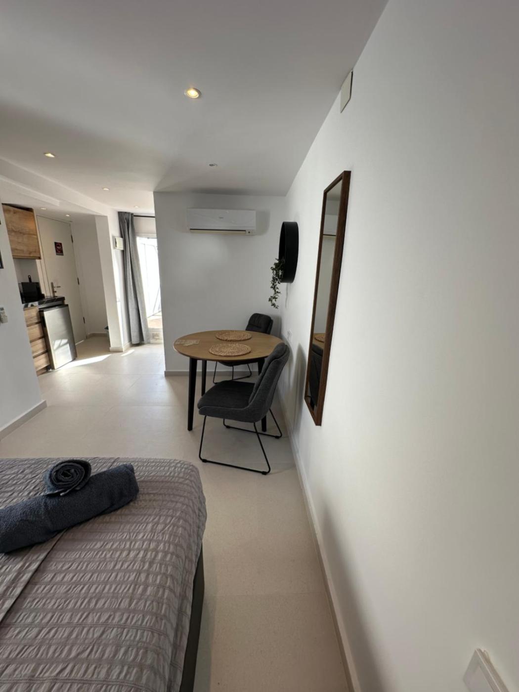 Estudio con terraza. In the kitchen, guests will find a stovetop, a refrigerator, kitchenware and a microwave. The studio features air conditioning, a washing machine, a terrace with sea views as well as a private bathroom boasting a shower. The unit has 1 bed.