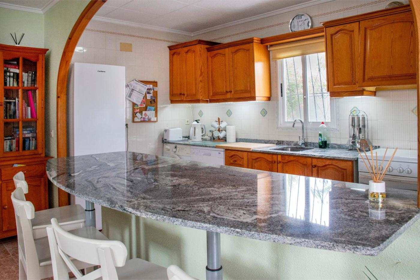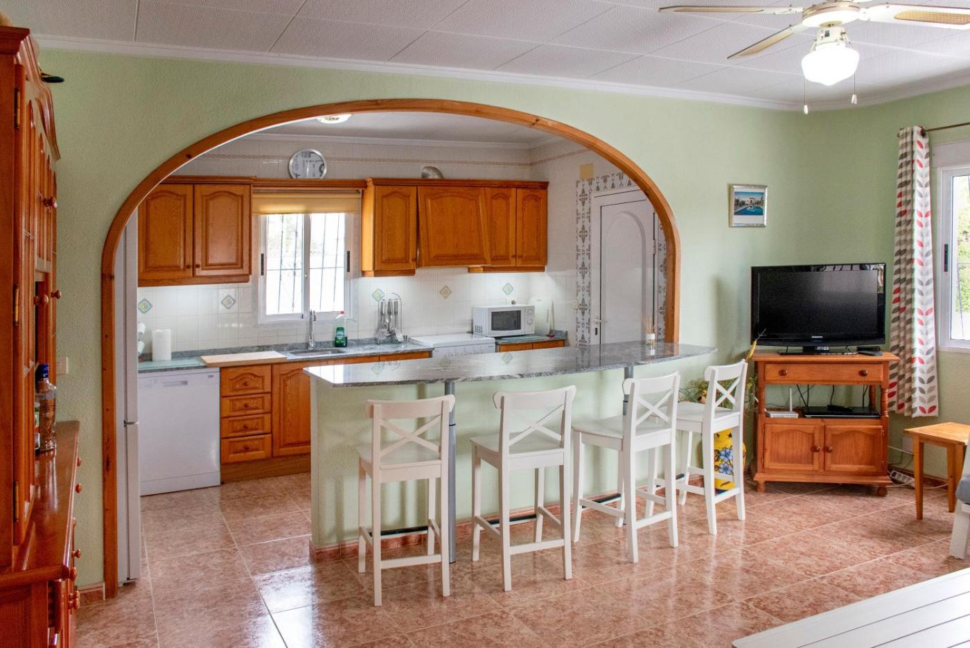 La villa dispone de 4 dormitorios, 3 baños, ropa de cama, toallas, TV con canales por cable, cocina totalmente equipada y terraza con vistas al jardÃn.