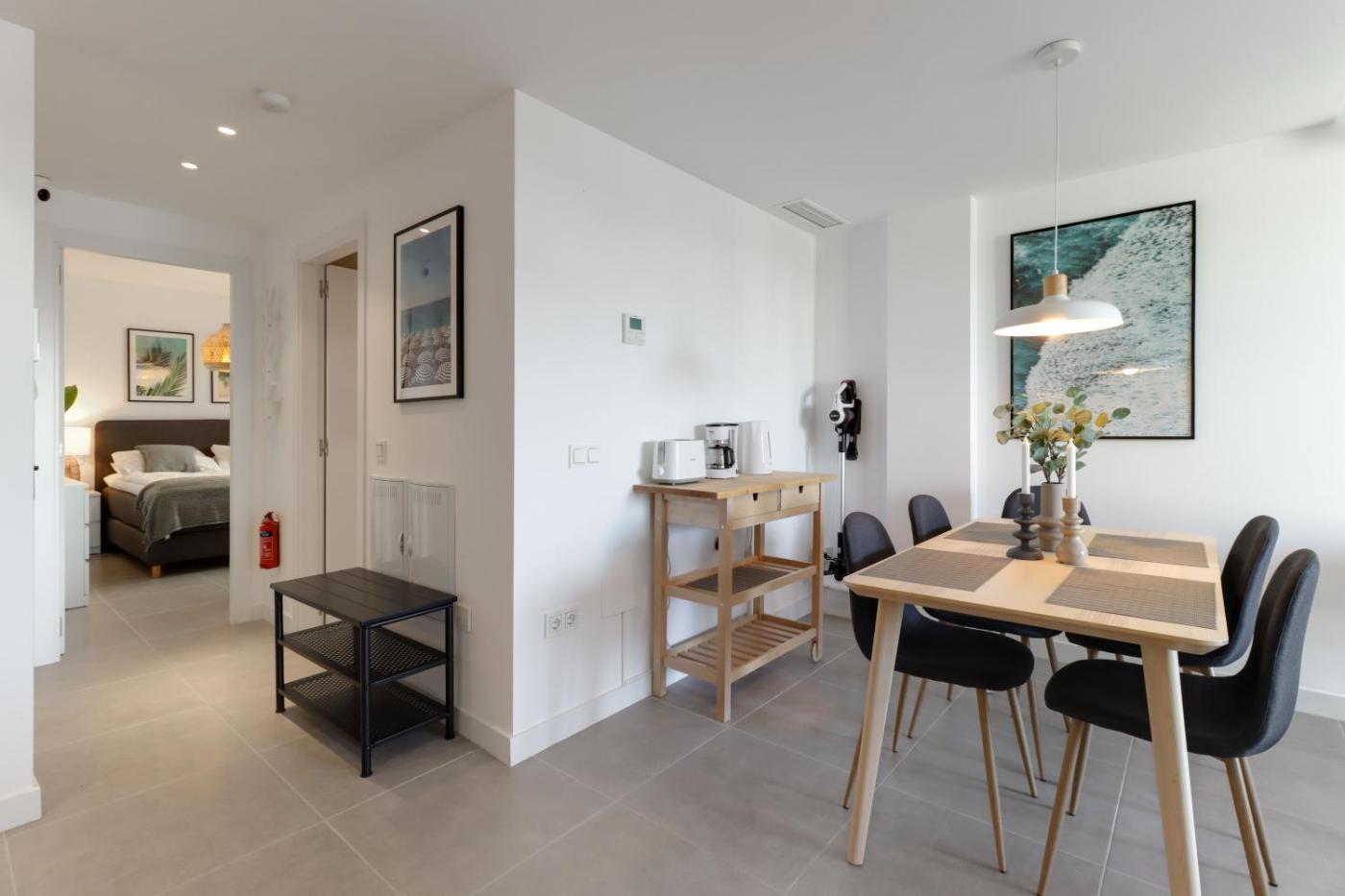Apartamento de 1 dormitorio. This apartments standout feature is the private pool. Boasting a private entrance, this air-conditioned apartment includes 1 living room, 1 separate bedroom and 1 bathroom with a walk-in shower and a hairdryer. In the kitchen, guests will find a stovetop, a refrigerator, a dishwasher and kitchenware. Featuring a balcony, this apartment also offers a washing machine, a tea and coffee maker and a flat-screen TV. The unit has 2 beds.