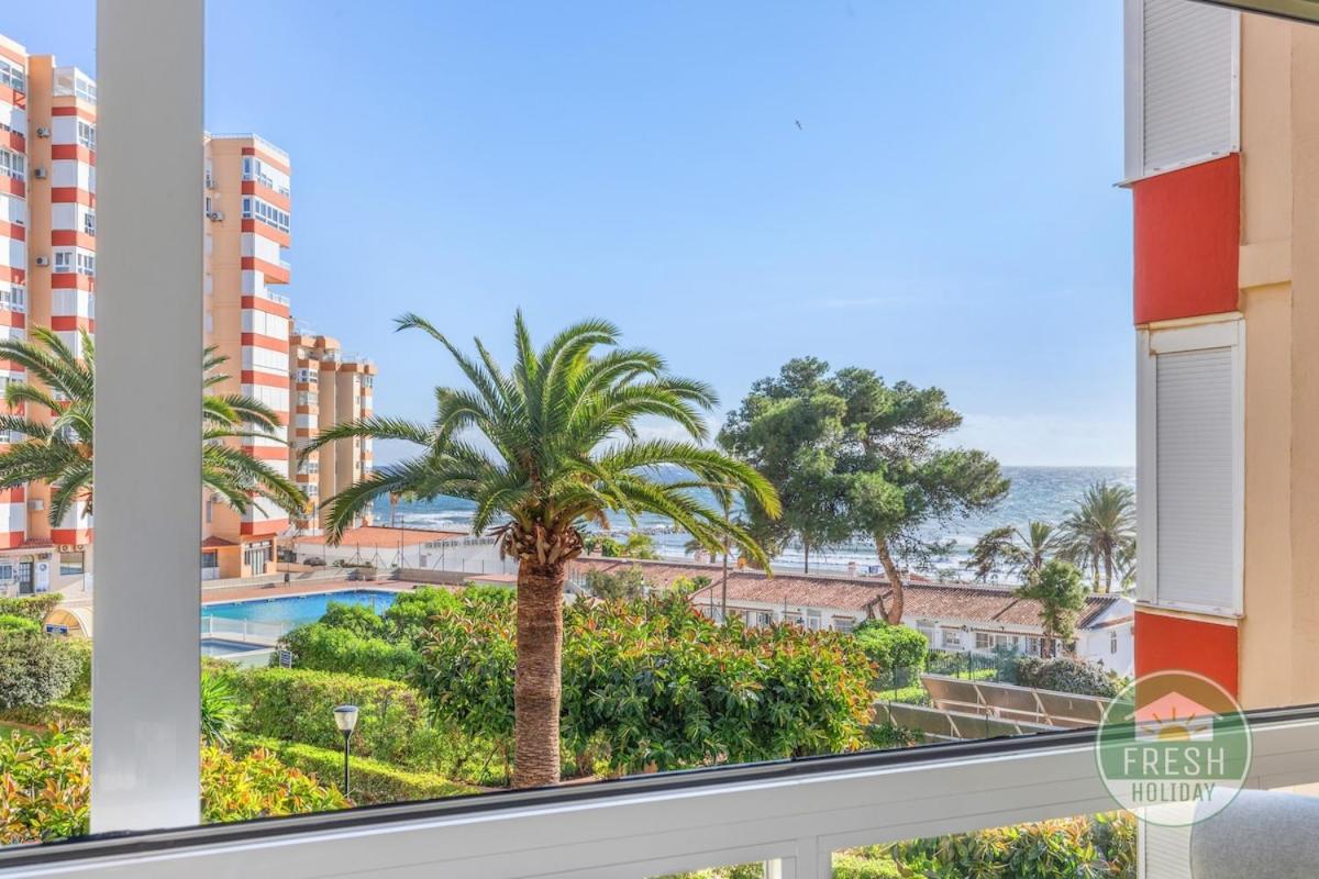 Sunny beachfront apartment with pool and aircon, que cuenta con piscina de temporada al aire libre y jardÃn, ofrece alojamiento en Torrox Costa con wifi gratis y vistas al mar. El alojamiento ofrece vistas a la piscina y al jardÃn y está a 7 min a pie de Playa Ferrara.