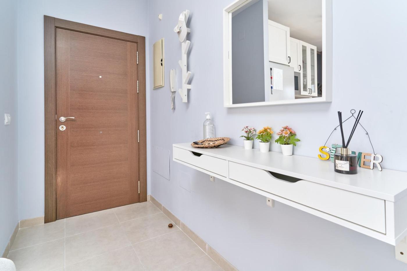 Apartamento Deluxe de 2 dormitorios con balcón. Boasting a private entrance, this air-conditioned apartment features 2 bedrooms, 1 bathroom and a kitchen. The well-fitted kitchen has kitchenware, an oven, a microwave and a toaster. Featuring a terrace, this apartment also features a washing machine, a coffee machine and a TV. The unit has 2 beds.