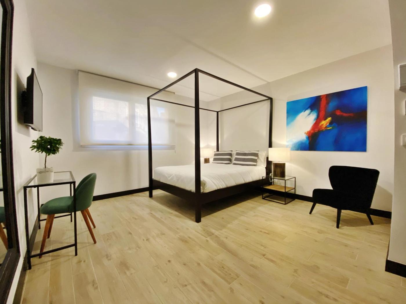 Habitación Doble Deluxe. The double room features a sofa, a tiled floor, as well as a private bathroom featuring a walk-in shower and a hairdryer. The air-conditioned double room provides a flat-screen TV with streaming services, soundproof walls, a seating area, a wardrobe as well as a quiet street view. The unit offers 1 bed. ;