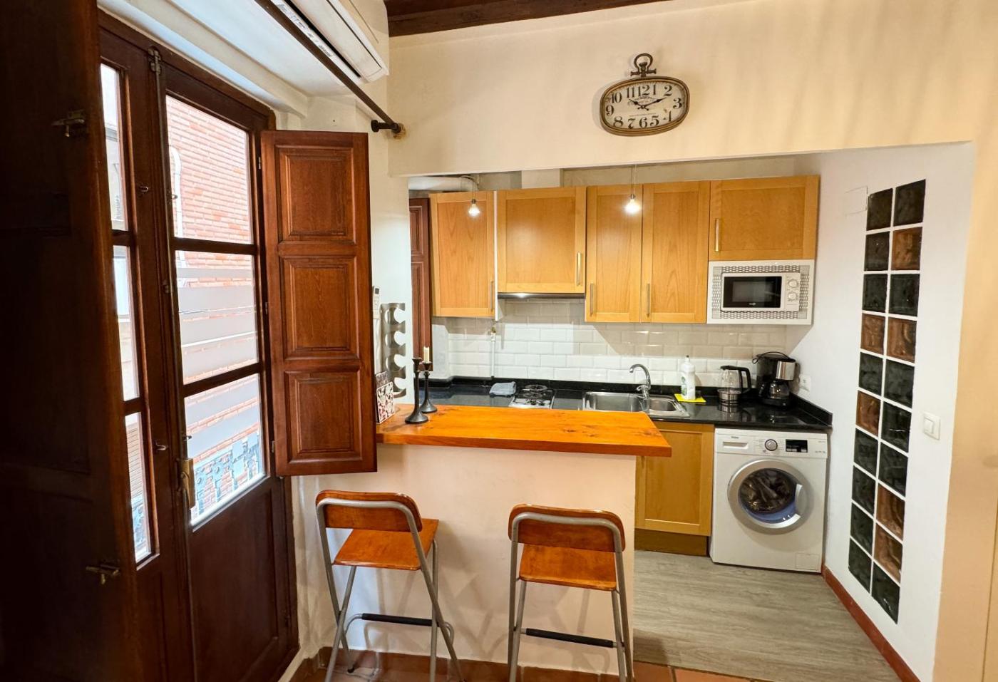 Apartamento con ducha. The apartment has 1 bedroom and 1 bathroom with a shower and free toiletries. Guests can make meals in the kitchenette that features a refrigerator, kitchenware, a microwave and an electric kettle. The apartment features air conditioning, a washing machine, a seating area, a dining area, as well as a TV with cable channels. The unit has 1 bed.