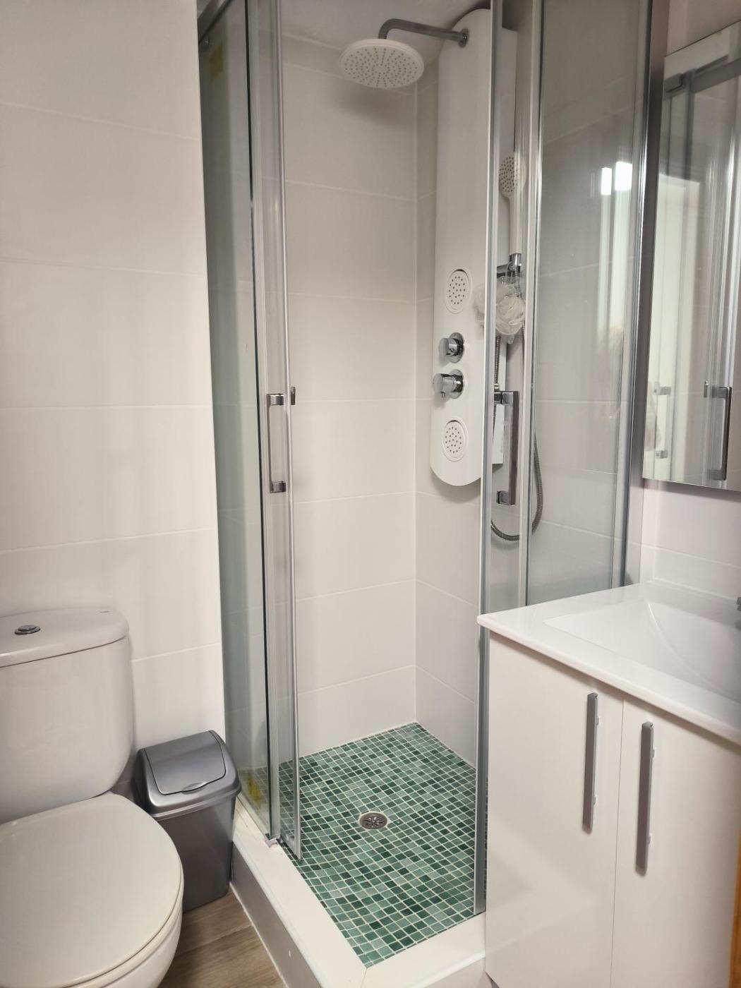 Habitación Triple. The triple room offers air conditioning and a tea and coffee maker, as well as a private bathroom boasting a shower. The triple room provides a dining area, a wardrobe and heating. The unit has 3 beds. ;