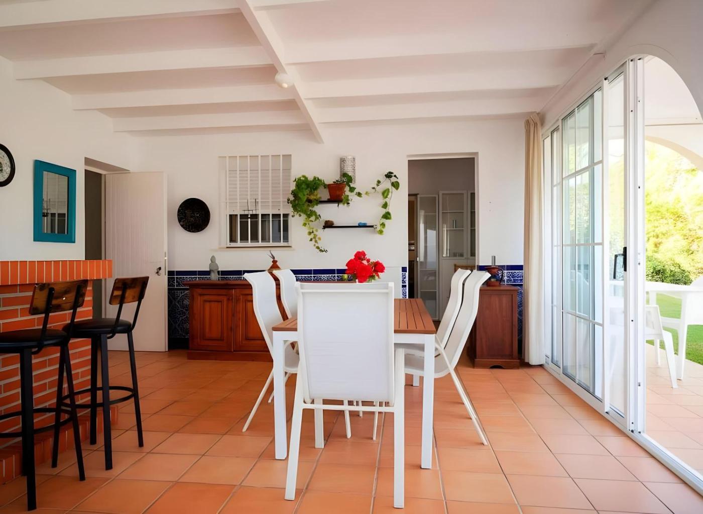 Esta casa o chalet con aire acondicionado se compone de 3 dormitorios independientes, una sala de estar, una cocina totalmente equipada con nevera y lavavajillas, y 2 baños. Hay TV.