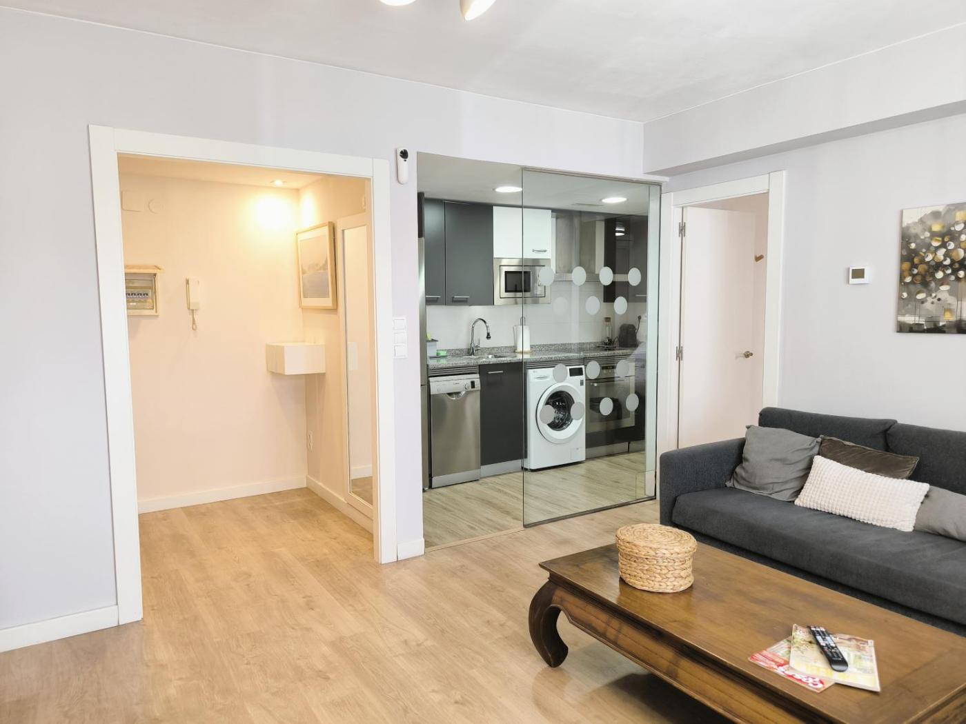 Apartamento de 1 dormitorio. This apartment is comprised of 1 living room, 1 separate bedroom and 1 bathroom with a shower and free toiletries. The well-fitted kitchen has a refrigerator, an oven, a microwave and a toaster. This apartment is air-conditioned and features a seating area with a TV, a washing machine, a coffee machine, a dining area, as well as a wardrobe. The unit offers 2 beds.